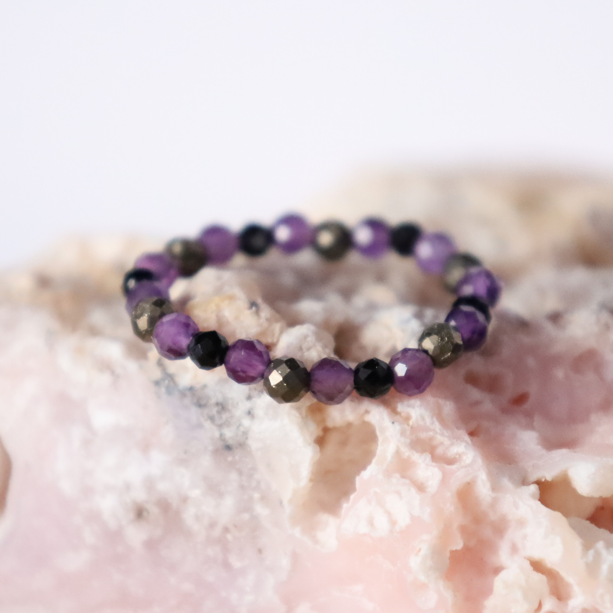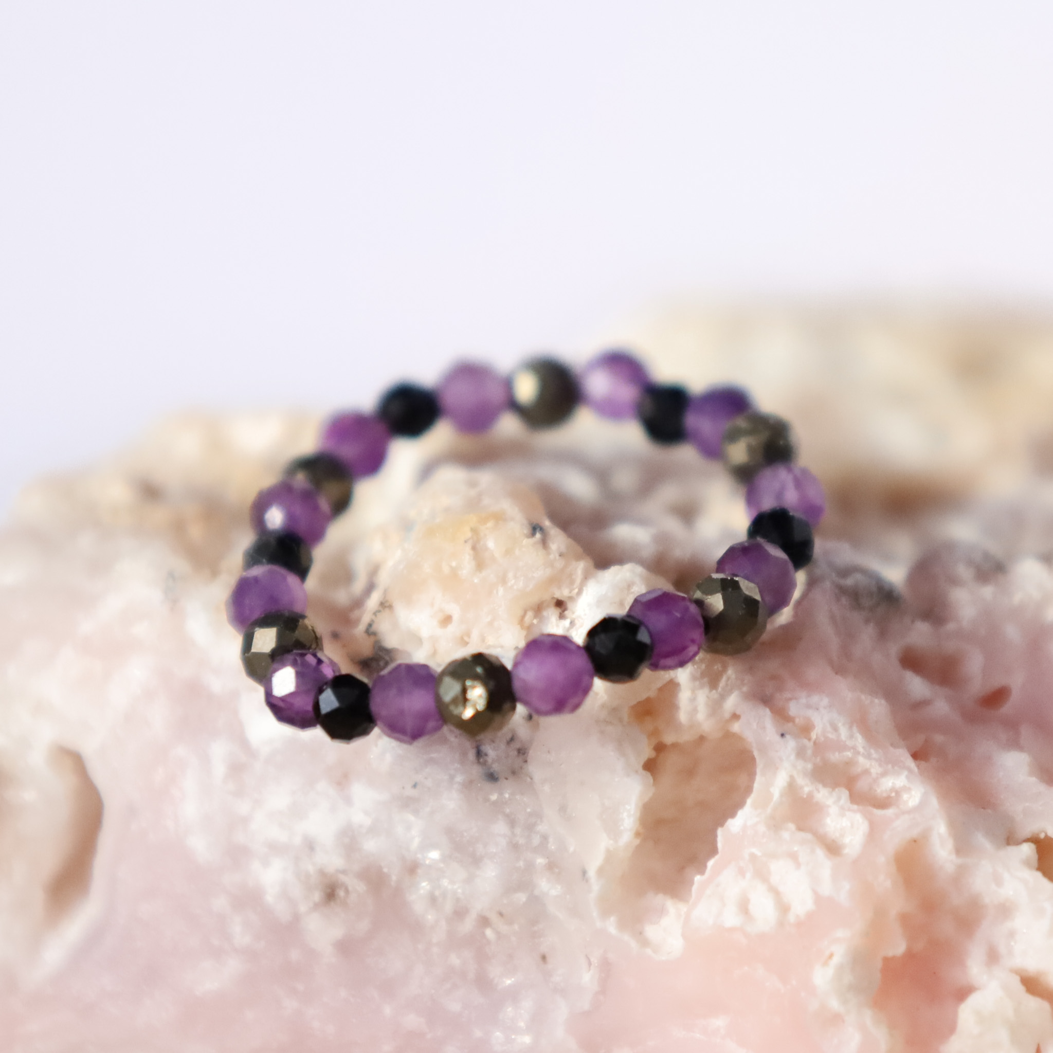 Pierścionek Ametyst, Piryt, Czarny Turmalin